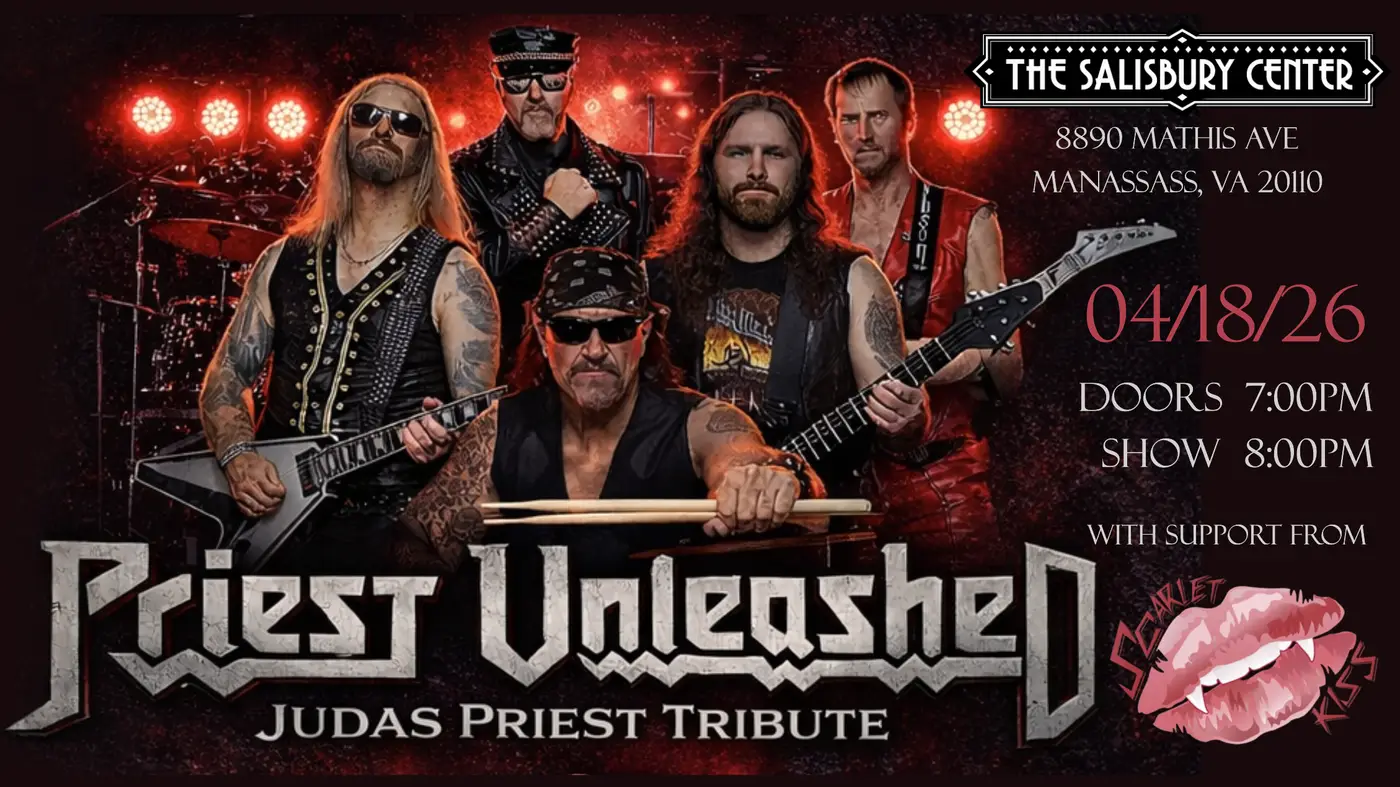 On Saturday, April 18th, the thunder rolls into The Salisbury Center as Priest Unleashed delivers a full-throttle tribute to the legendary Judas Priest — complete with soaring vocals, screaming guitars, and the arena-shaking power that defined heavy metal for generations.