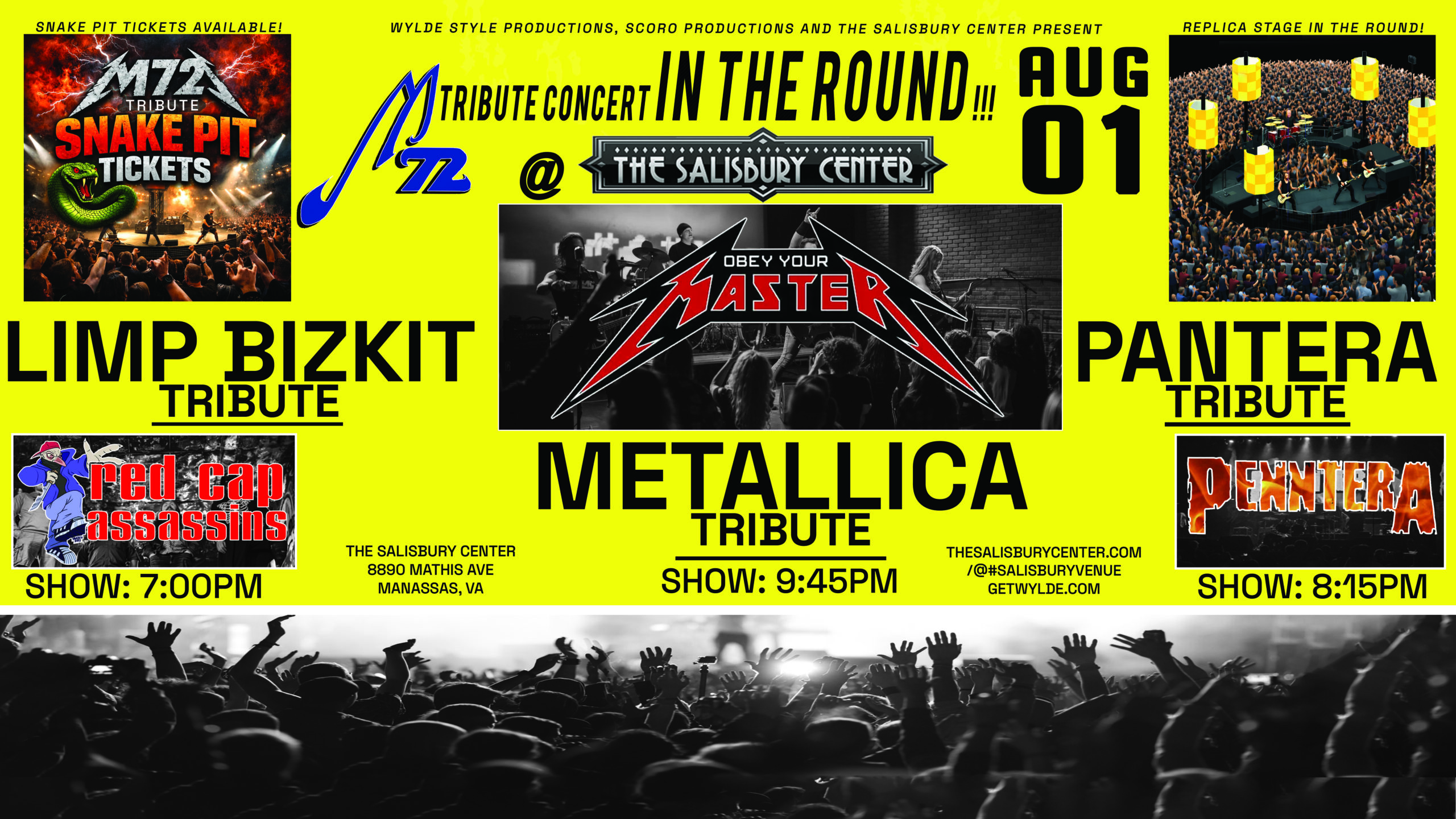 Get ready for a one-night metal takeover as the M72 Tribute Concert roars into The Salisbury Center in Manassas, VA. This high-energy event recreates the intensity of Metallica’s legendary M72 tour with a replica stage in the round and an immersive snake pit that puts fans right in the heart of the action .